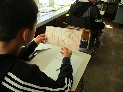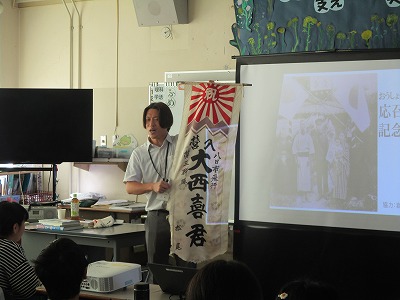 今日は6年生で滋賀県平和祈念館の方にお越しいただき、3,4校時に出前授業をしていただきました。戦争が終結して今年で80年を迎えました。現在、戦争のことを覚えておられる方は、どんどんと少なくなってきています。講師の先生は実際に戦争を経験したわけではないですが、いろいろな話を直接聞いたり、伝えられたりして、我々に戦争の悲惨さや平和の尊さについて教えていただきました。また、当時の様子を映像で見たり、当時の軍服や赤紙などを見せてもらいながら学習しました。90分の学習があっという間でした。修学旅行ではさらに平和学習について学び、自分の思いや考えを交流できるといいですね。戦争のない世の中になってほしいものです。