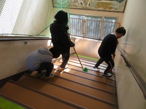 午後は、6年生が、6年間使わせてもらった校舎に感謝の気持ちを込めて、丁寧に掃除をしました。それを見た下学年の子どもたちは、「がんばれ」や「ありがとう」と声をかけていました。