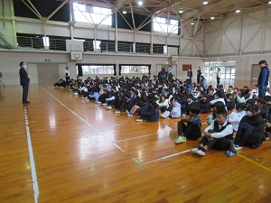 最後に、犯人が捕まり安全の確認ができたという想定で体育館に集まった児童の顔はしっかりと訓練に参加できた様子が伝わりました。