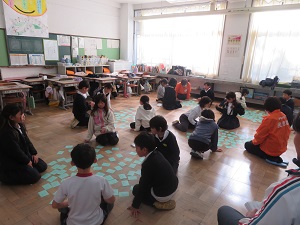 1年生、年生、6年生が民生児童委員さんとの交流を楽しみました。それぞれの学級で予め遊びの内容を決めて、民生児童委員さんにも入っていただきました。ゲームやカルタ、百人一首などを楽しみました。