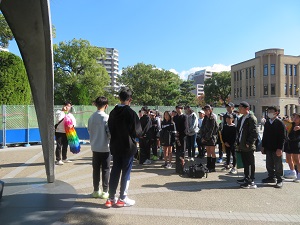 6年生は、堅田駅に集合し出発式を行い、満員の湖西線から新幹線に乗り継ぎ広島平和記念公園へ行きました。