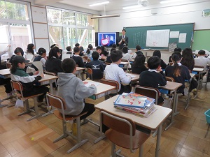 新任式と始業式は、校長室からの配信を教室のモニターで見てもらう形で行いました。