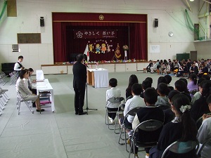 入学式は、6年生と5年生が児童代表として参列し、たくさんの来賓の方々や保護者の皆様に見守られながら、心温まる式を挙行することができました。