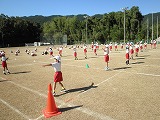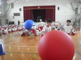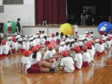 今日、運動会のたてわり種目「大玉おくり」の練習をしました。全校のみんながたてわりチームに分かれて、立ったり座ったりして大玉を送っていきます。ちがう学年の子どもたちが一緒になって競技するのって、微笑ましくていいですね。
