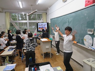 今日のパワーアップの時間に、明日の夢プロに向けて「WAになって踊ろう」を練習しました。