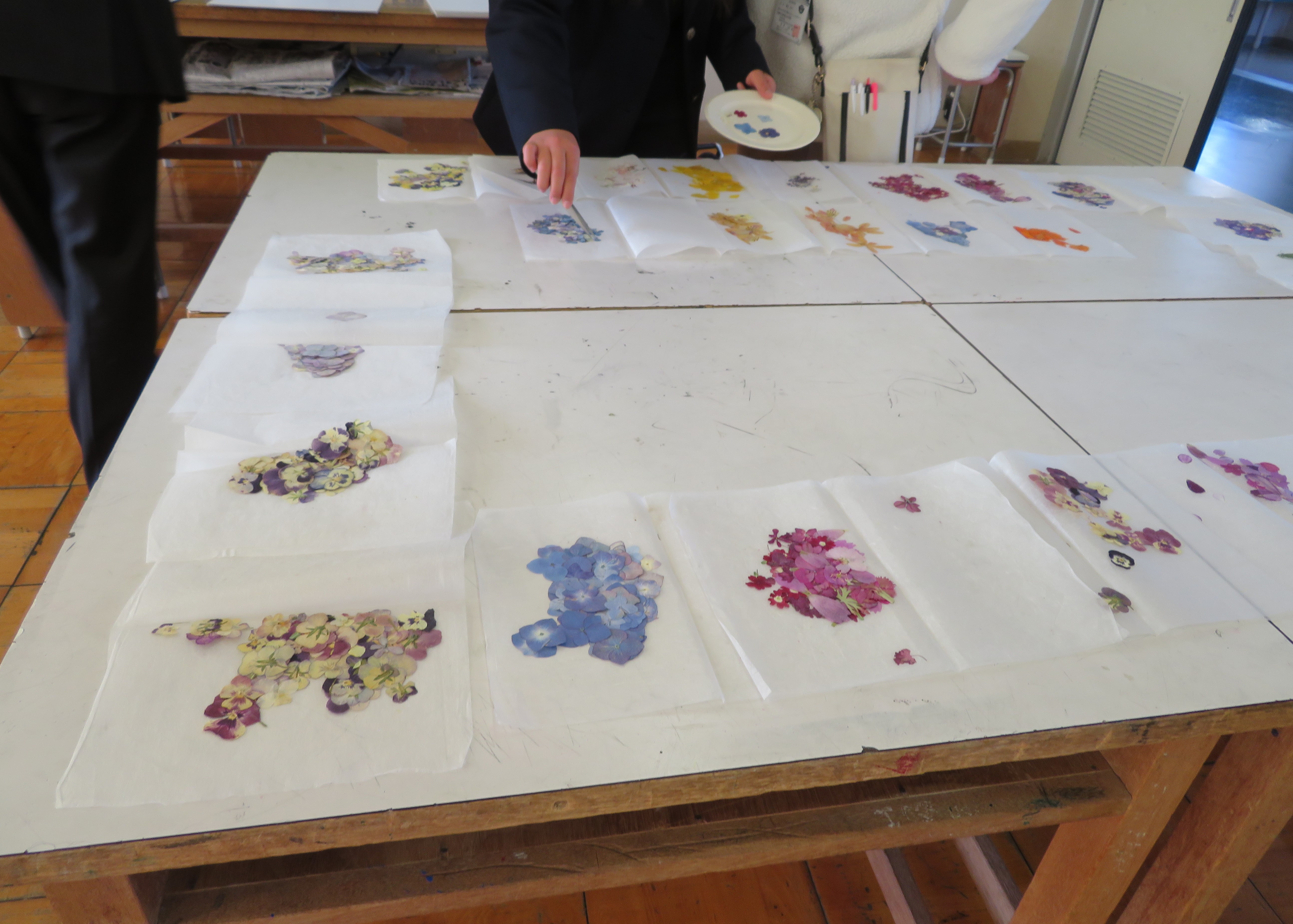 1年生の生徒たちが、今日の5時間目に「令和8年度入学生用のしおり」をつくりました。大津北警察署少年補導委員の方々が準備してくださったシート、押し花、言葉が書かれた用紙を使い、生徒たちが自分でデザインを考えながら、心を込めてしおりの作成をしていました。