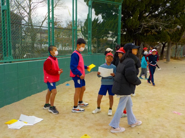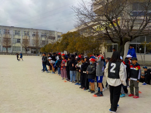 元気ハツラツ委員会と石山子ども放送局の共催で、「逃走中」という鬼ごっこをしました。今日は3,4年生の番です。ハンター(サングラスをかけた先生や高学年の人たち)が追いかけるので、みんなは全力で逃げます。クイズに答えたら復活するルールなどがある子どもたちが考えた鬼ごっこだったので、「またやりたーい!」の声があちこちから聞かれました。委員会の皆さん、楽しいイベントありがとうございました! ・
