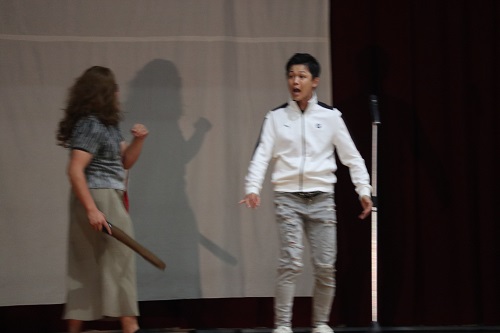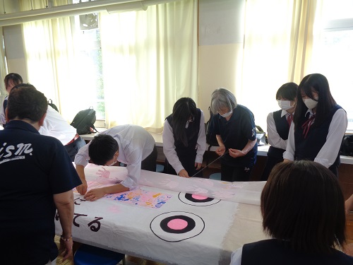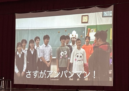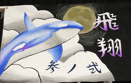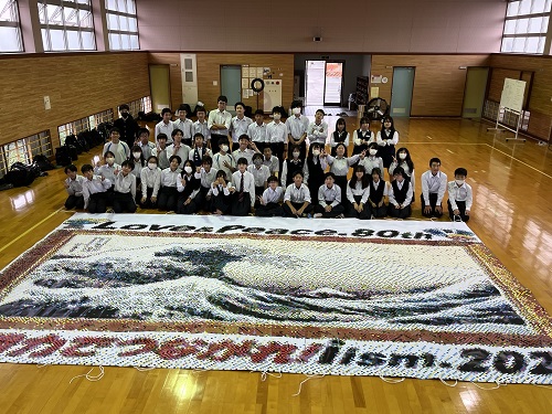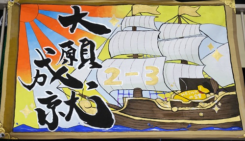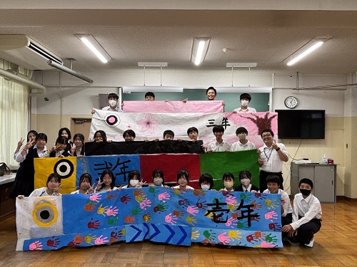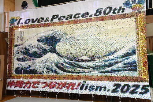 今年の石山フェスタのテーマは「あんどーなつ」。生徒会企画のアンパンマン劇で幕が開きました。「一人ひとりが主役となり、楽笑力でフェスタを盛り上げよう」との思いが込められています。ビッグアートでは、戦後80年という節目にあたり、「Love & Peace」をメインテーマに制作。さらに、NHK大河ドラマ「べらぼう」の主人公・葛飾北斎を題材とした浮世絵も描かれ、平和への願いと芸術の迫力を表現しました。