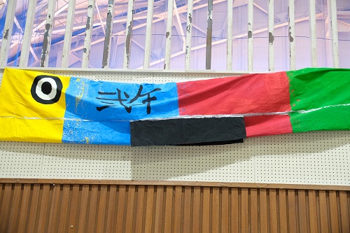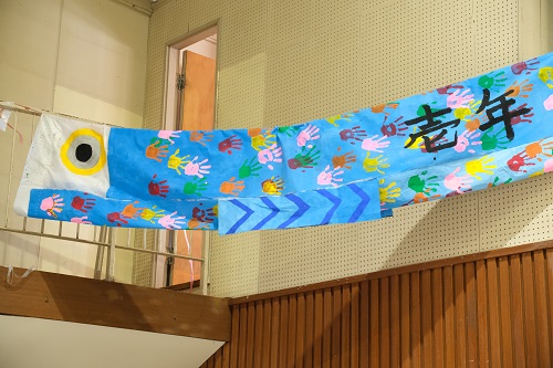 伝統となった学区のこいのぼり制作。3年生・2年生・1年生がそれぞれ制作したこいのぼりが完成。来春には、地域とともに空を泳ぐ日を心待ちにしています。