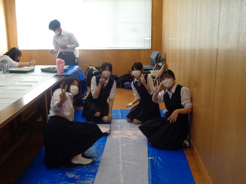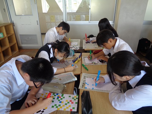 今週から「GO!5!ワーク石山」の事後学習、「石山フェスタ2025」の活動に取り組んでいます。6校時から放課後には「PVタイム」が設けられ、学級ごとに合唱練習を行うほか、パート別では「学級旗」「いじめ防止CM」「ビッグアート」「鯉のぼり」制作に分かれて活動しています。毎年全校で挑戦しているのが「ビッグアート」です。全校生徒一人一枚の紙に区切られた約200マスを丁寧に塗っていきます。デザインは完成するまで誰もわからない仕組みになっており、468枚を貼り合わせたとき、始めて大きな1枚の絵が現れるので、完成が楽しみです。文化祭を全校で創り上げていく過程そのものを楽しみながら、活動を進めていきましょう。