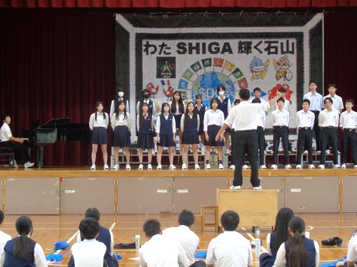 本番に向けて、学年毎に合唱リハーサルを行いました。互いの歌声を聴き合うことで、新たな目標や発見が生まれる貴重な機会となりました。リハーサル後には、音楽科の先生からクラスごとに、よくできている点と、これからの練習のポイントを丁寧にお話いただきました。曲の聴かせどころや強弱の工夫、歌詞の言葉の表現、ハーモニーの響きなど、さらに磨きをかけていけば、いっそう心に響く合唱になる予感がします。生徒たちが自分にできる精一杯を出して、練習を重ね、本番での輝きを期待しています。2025/09/10