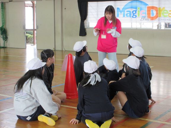 田上学区の小学校と中学校で、交流会を行いました。前半は田上小学校と上田上小学校の6年生で、それぞれ考えた遊びを一緒にして楽しみました。