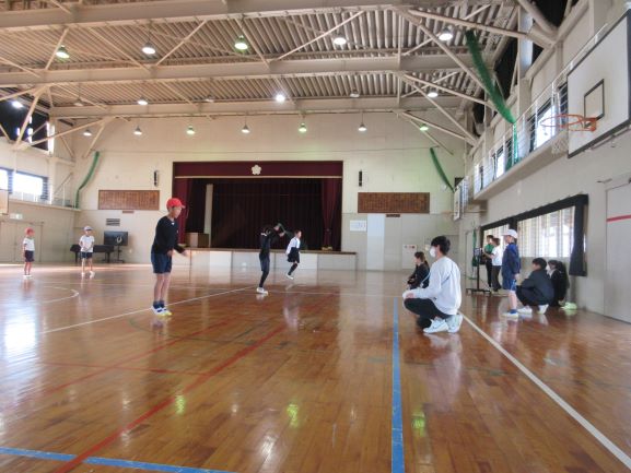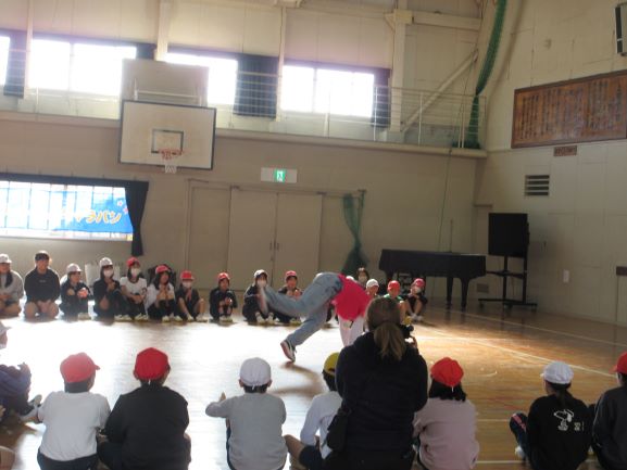 3年生以上の子どもたちがストリートダンスを教えていただきました。ブレイキンの大会にも出場されているダンサーさんなど3名の先生方が来校してくださり、1曲ダンスを丸ごと覚えられるように何度も丁寧に練習してくださいました。途中ダンサーの方のパフォーマンスを見せていただく時間や、後半はグループに分かれてダンス体形や決めのポーズを相談する時間がありました。最後、グループ発表のときにはどのチームにも温かいエールや手拍子が起こり、決めポーズが終わると大きな拍手が贈られました。チャレンジできた2時間。子どもたちは嬉しそうでした。多くの関係者の皆様、ありがとうございました。