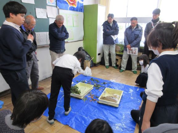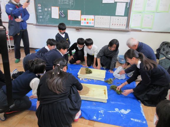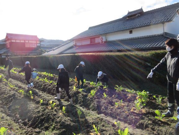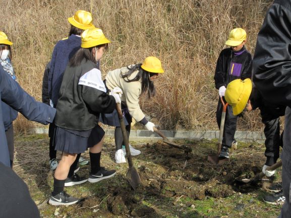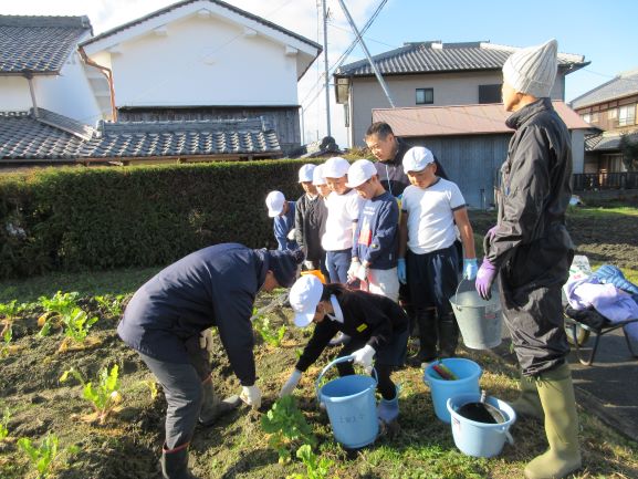 3年生の子どもたちが地域の方と一緒に菜の花の追肥をしました。ちょうど雨もあがり、お日さまが出てきて天候的に恵まれました。株と株の間を少し掘り、そこに肥料をまいて土をかぶせていきました。みんなくるくるとよく働いたので、少人数でしたが短時間で終わることができました。次は2月頃に2回目の追肥をする予定です。ご協力いただいた地域の皆様、ありがとうございました。