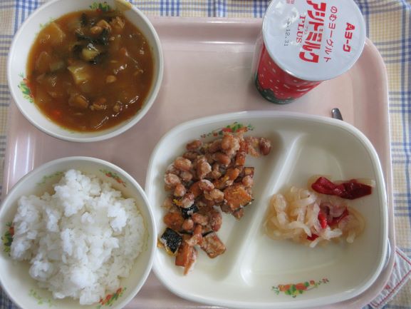 【おすすめカレー・残さず食べようデー】麦ごはん・のむヨーグルト(A)