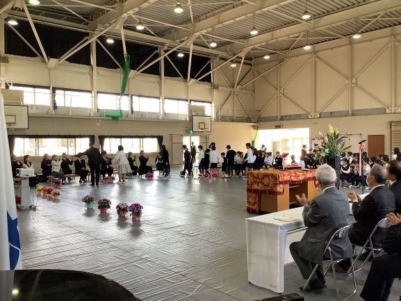 2校時目に第152回目の入学式が行われました。8名のかわいい1年生が6年生と一緒に、会場の音楽と手拍子に合わせて入場しました。担任の先生に名前を呼ばれると、「はい」と返事ができました。6年生代表の子どもたちが歓迎の言葉を伝えると、静かに聴いていました。全校の子どもたちで迎えられた温かな入学式になりました。保護者のみなさま、おめでとうございます。そして駆けつけてくださったご来賓のみなさま、ありがとうございました。新しいメンバー全員ですばらしい1年にしていきたいです。