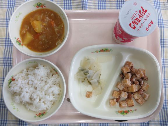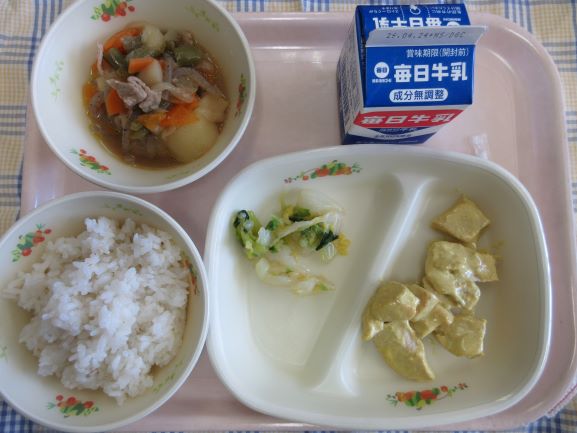 今日は子どもたちの好きなカレーでした。1年生の子たちももりもりおかわりしてほぼ完食できたようです。育ち盛りの子どもたち、これからが楽しみです。