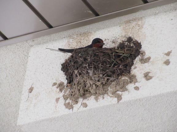 今年もつばめさんたちが多く飛んできています。正面玄関の左上部に昨年度同様つばめの巣ができつつあります。上手にくちばしで泥や藁のようなものを運んできて、しっかりと巣の形にしている技に感心します。何羽くらいの雛が育つのか楽しみです。