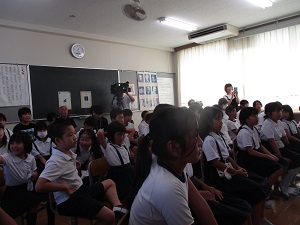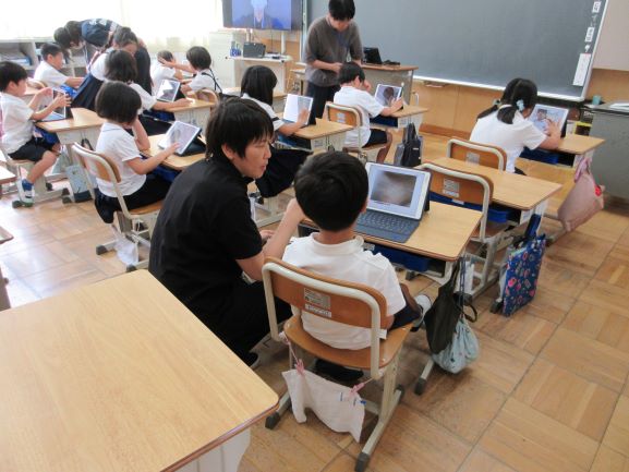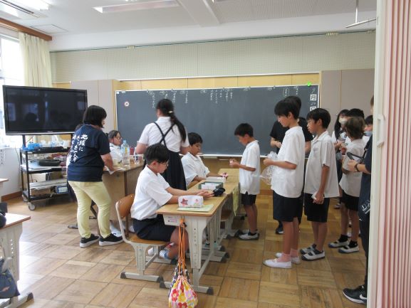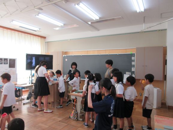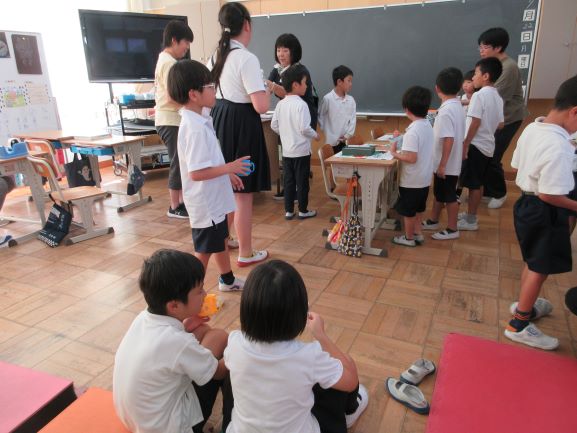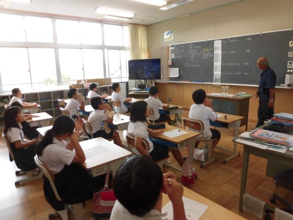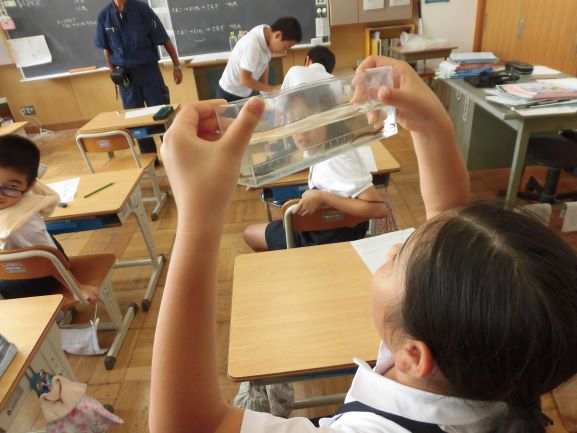 帰校後5校時に岩ア先生に来校いただき、今回の学習を振り返ったりまとめたりする学習をしました。水槽に入れた生き物を下から眺める活動があり、いろいろな角度からゆっくり観察ができました。また、先生のお話を聴いて理解を深めることもできました。岩ア先生、お忙しい中、ありがとうございました。