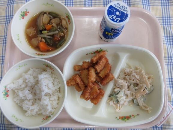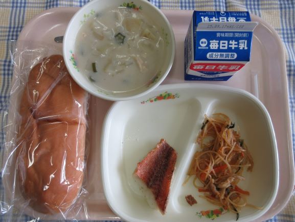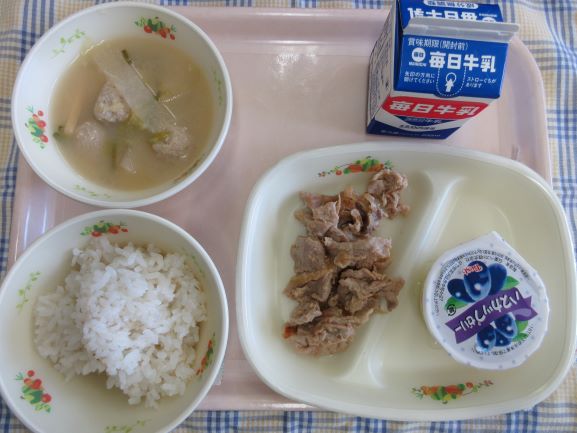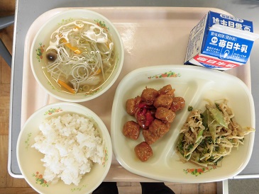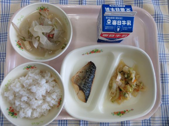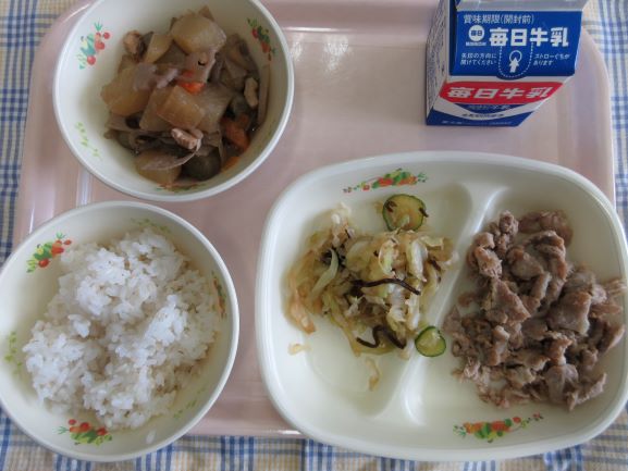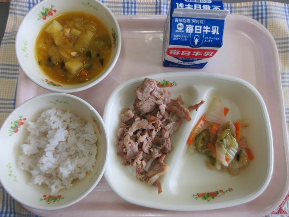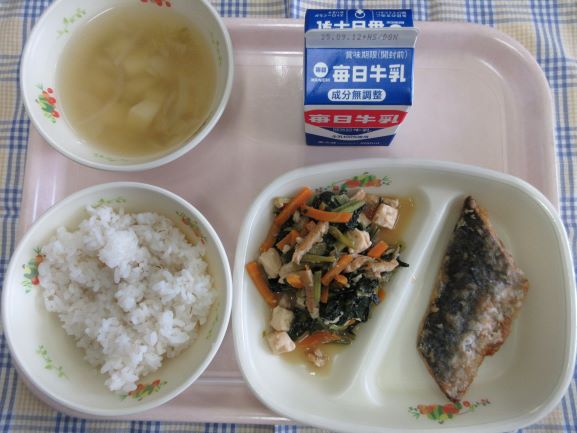今日の献立は塩分補給ができ、かつご飯に良く合うおかずです。運動会の練習などで汗をよくかく時季にありがたいメニューです。