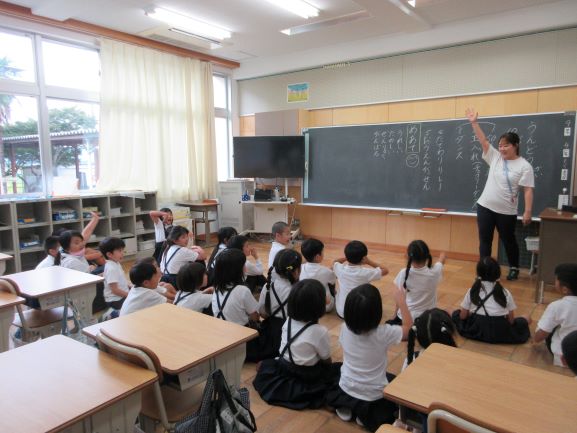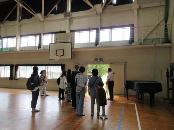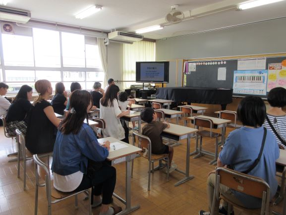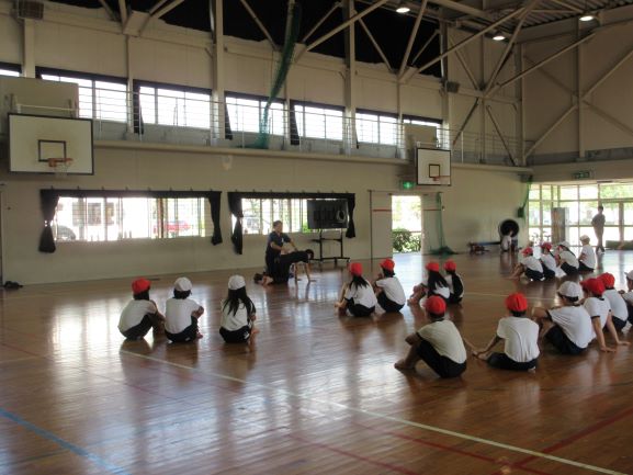 9月に「やまのこ」体験学習を控えている4年生は、保護者の方もお招きして説明会を行いました。小学校での初めての宿泊体験になります。行けるのが楽しみ、といった感じで先生の説明を聴いている子どもたちでした。1,2年生は10月の運動会に向けて、低学年で取り組む種目、特に演技についてお話を聴いていました。演技に使う楽曲が流れると、ぱっと笑顔が広がり、「知ってる!」とつぶやいたり、自然に体を動かしたりしている子どもたちの姿も見られました。