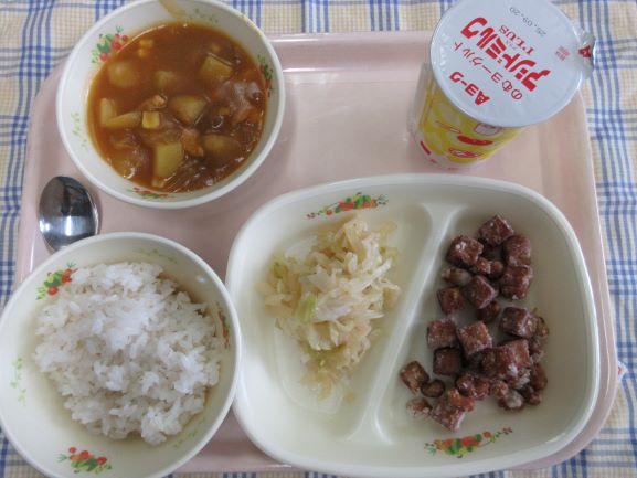 【おすすめカレー・残さず食べようデー】麦ごはん・のむヨーグルト(A)