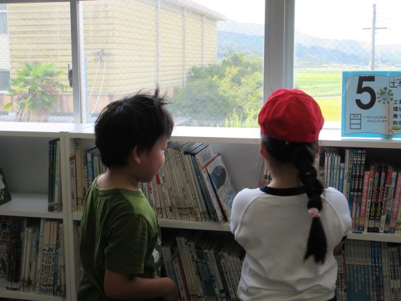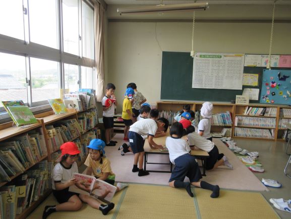 今日はそらぐみさんが小学校に出かけてくださり、1年生と1時間交流しました。前半、体育館でおにごっこを楽しみました。暑さもありましたが、子どもたちは何のそので、体育館を駆け回ってにこにこ顔でした。もう1回やりたい!という声も出ましたが、今日は暑さもあり、1回で終了しました。後半は涼しい図書室に行き、本を読んだり折り紙をしたりして過ごしました。だいぶお互いが打ち解けていて、一緒に本を見たり、折り紙をしたりするペアの姿も見られました。