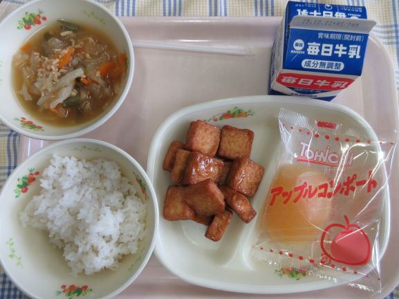 麦ごはん・牛乳厚揚げのあまからだれかけ