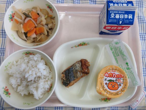 福岡県といえば筑前煮。お野菜がたっぷりとれておいしいおかずです。ゼリーの蓋のみかんイラストがとてもかわいいです。