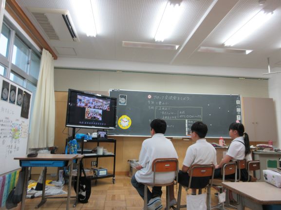 田上小・青山小のお友達と今日はオンラインで交流をしました。自己紹介や学校紹介をお互いし合いました。画面ごしではありましたが、一緒の時間を過ごせて楽しい交流になりました。