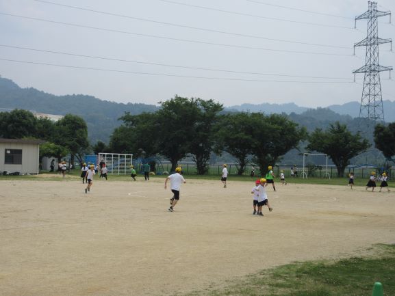 体育委員会主催の全校遊びを今年度初めて行いました。暑さのため、実施が延期になっていましたが、「みんなで遊びたい!」という子どもたちの声が強く、5分間、1回だけ、という条件付きで「どろけい」をしました。お昼の放送で「どろけいをします」と流れたときには各教室から「やったー!」と歓声が上がっていました。緑のビブスをつけた5,6年生が刑事役でビブスのない子たちを追いかけてくれました。みんな捕まらないように走って逃げていました。最後集まったときに「気分の悪い人はいませんか」と委員会の代表が尋ねてくれましたが、幸いしんどくなった人はいませんでした。たった5分間でしたが、みんなで楽しめたひとときでした。あいさつの中で「みんなで仲良く遊んでいじめなどのない学校にこれからもしていきましょう」と話してくれたこと、大事にしていきたいです。