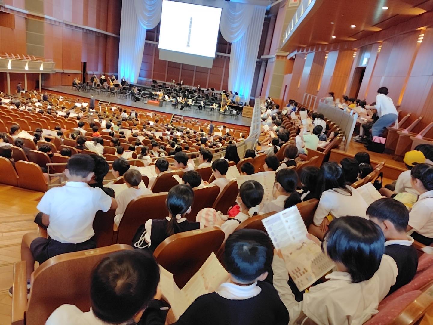 5、6年生の子どもたちが県下屈指のホールであるびわ湖ホールでオーケストラの生演奏を聴きました。曲の感じによって音量や速さが変わったり、楽器によって音色が違ったりすることを体感してきました。来週の本校音楽会での自分たちの演奏に、今日感じたことが少しでも生かせられると良いなと思っています。