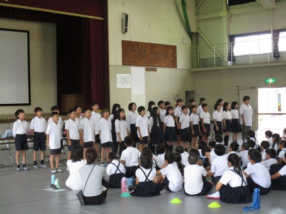 最後は全校合唱「beleive」を歌いました。会場に歌声があふれて観客の方々から大きな拍手をいただきました。みんなやりきったとても良い表情でした。学校運営協議会の委員の方々からは「心にぐっとくる発表だった」「難しい曲をよく練習してできていた」「1年生の子たちは入学してまだ2ヶ月なのに、よく先生を見て発表していてびっくりした」「学年に応じた取り組みだった」「高学年の子どもたちは歌詞からもいろいろなことを感じ取って歌っていた」など温かいご感想をいただきました。地域・保護者の皆様、ご声援ありがとうございました。