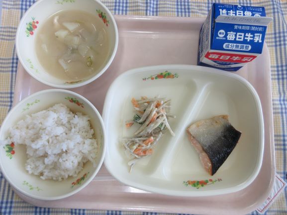 和風献立です。給食のお味噌汁はお出汁が効いていてとても美味しいです。