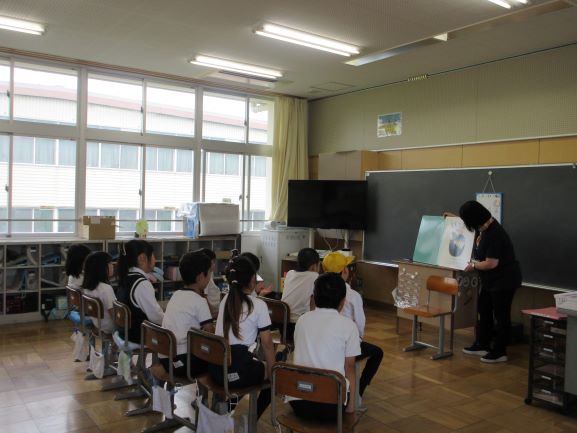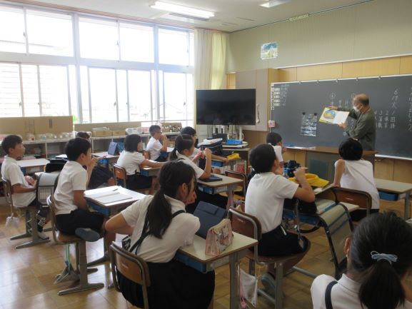 牧町でホタルの保全活動をされている東郷先生が、3年生にホタルの出前授業をしてくださいました。自作の教材とホタルさんたちを連れてお話をされた後、最後は教室でホタルを放してくださいました。子どもたちは「ぼくのホタル」「わたしのホタル」と自分の手に乗せてとても喜んでいました。上田上の自然のすばらしさに触れた1時間になりました。東郷先生、ありがとうございました。