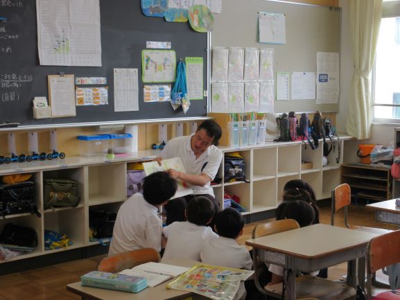 今年度、主に第3月曜の朝、各担任が持ち回りで全学級の子どもたちに読み聞かせをする取り組みを始めました。今日はその1回目。自学級の子どもたちに担任が自分で選んだ絵本を読みました。どのクラスも担任の先生の話を静かに興味深く聴いている姿が見られました。来月からは違う学年の担任が順番に回ります。どの先生がどんな絵本を読んでくれるのか、楽しみですね。