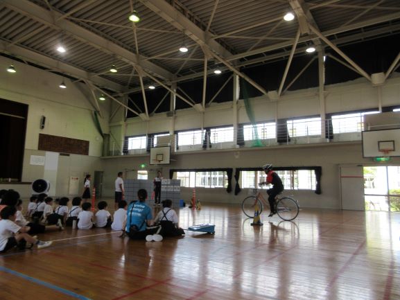3,4校時に1時間ずつ、下学年・上学年に分かれて、JAFの方から交通安全に関わるお話を伺いました。さまざまな事故につながってしまう状況の映像や、歩く人、走る人、自転車に乗っている人、どの人がすぐに止まれるかの実験など、子どもたちにわかりやすい授業をしてくださいました。上学年の子どもたちには「自転車走行時の安全に関わるクイズ」もあり、みんなよく考えて回答していました。これからも命を大事にする行動をしていってほしいです。JAFの方ありがとうございました。