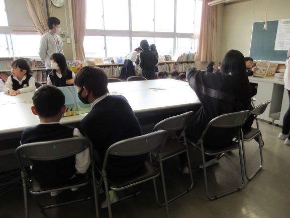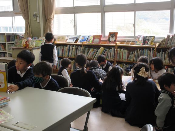 今日の3校時目、6年生と1年生の交流がありました。6年生が1年生の教室へ迎えに来て、一緒に図書室へ行き、1年生の子どもたちに本の読み聞かせをしてくれました。1年生の子どもたちは6年生の子どもたちの本読みに耳を傾けたり、周りの様子を見たりしていました。これからもいろいろな行事などで6年生は1年生によく関わってくれます。1年間どうぞよろしくお願いしますね!