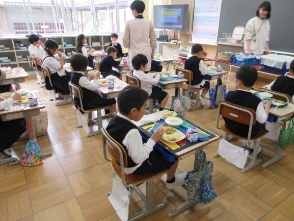 今日から1年生も給食をいただくことになりました。本日の献立は【外国料理・中国】