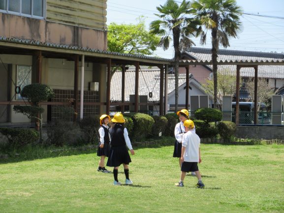 給食が先週18日から始まり、1年生の子どもたちもみんなと同じように昼休みを過ごせるようになりました。お天気のよい今日は、芝生や運動場で思い思いの時間を過ごす子どもたちの姿が見られました。ドッジボール、サッカー、鬼ごっこ、ブランコ遊び、お友達とおしゃべり・・・などなど。