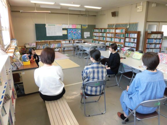 今年度も司書ボランティアの方が月1回程度本校に来てくださることになりました。今日は今年度最初の日。わかば学級と1,2年生のクラスで読み聞かせをしてくださった後、「菜の花会」のお話会担当の保護者の方々と、図書室の活用の仕方や子どもたちにどのように本にふれあう機会をつくるといいかなど、一緒に話をしてくださいました。熱心に取り組んでくださっていること、学校としてとてもありがたく思っています。