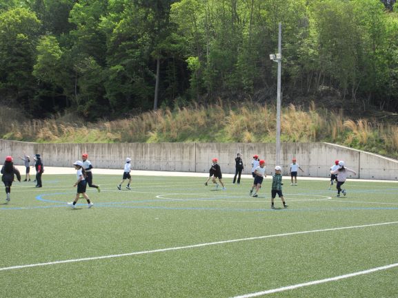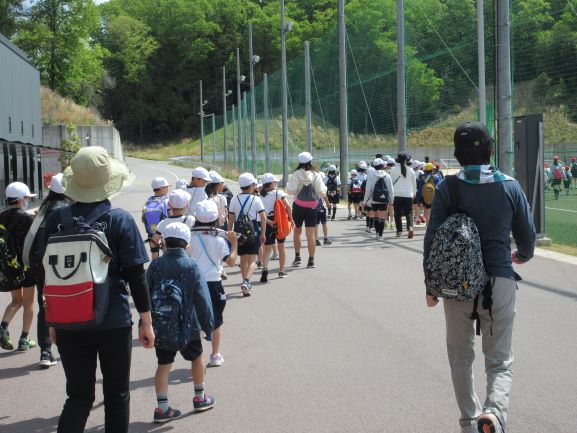 避難訓練を兼ねてたてわりハイクを行いました。ダイハツアリーナの人工芝グラウンドで1時間弱、縦割りグループで活動させていただき帰校しました。行き帰りは高学年の子どもたちが、小さい子どもたちの手を引いて、やさしくサポートをし続けてくれました。天候にも恵まれ、無事に終えられました。協力して活動する姿が見られ、いざというときにみんなでお互いのいのちが守れる訓練になってきています。