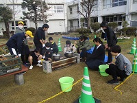 6年生が、夢広場のかまどベンチでごはんを炊いてくれました。まず、朝1時間目に、お米(上田米)を鍋に入れて水で洗ったり、かまどに薪を入れて火をおこしたりしてくれました。果たしてごはんが、うまく炊けるでしょうか。