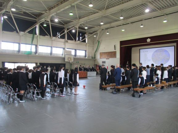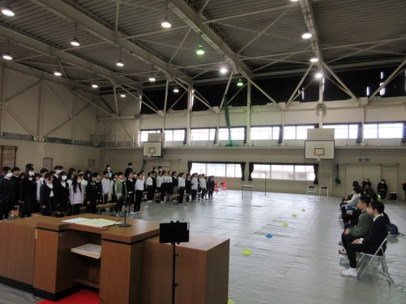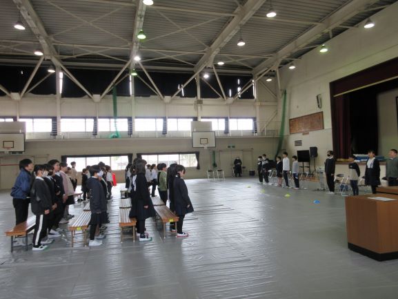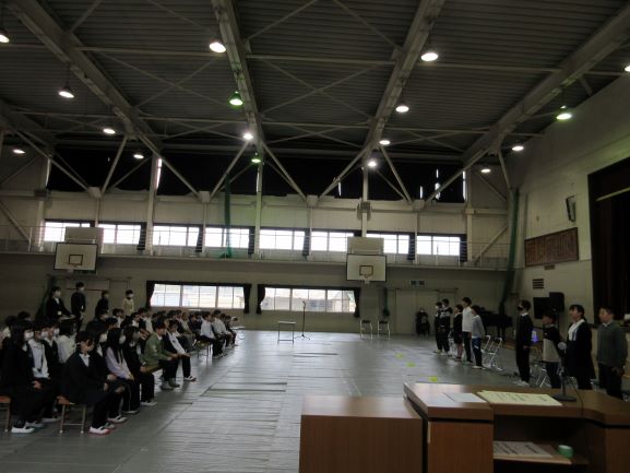 初めて卒業生・在校生が一緒に卒業式練習を行いました。今まではそれぞれが別に練習をしていたのですが、今日は向かい合った席で呼びかけなどを合わせました。卒業生の心のこもった呼びかけに、在校生も感謝の気持ちやお祝いの気持ちを込めて応えていました。双方、真剣勝負!といった雰囲気のよい練習ができました。明日は予行を行います。