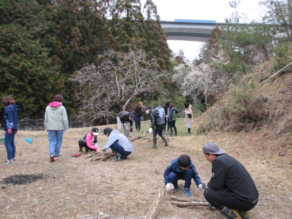 上田上公民館の主催で、里山体験教室がありました。地域の多くの方々がお手伝いに来てくださり、上田上の里山でしいたけの菌打ち体験をしました。予め地域の方が用意してくださったくぬぎの原木を運び、よい大きさにのこぎりで切って、電動ドリルで穴をいくつもあけてもらい、そこにしいたけの菌をとんかちで埋め込みます。子どもたちも大人の人たちに助けてもらいながら、原木を切ったり、菌を埋めたりしました。その間にかまどで上田上米を炊飯してくださり、温かいカレーと一緒にいただくこともできました。とても美味しいお昼ご飯でした。子どもたちはその後、しいたけ狩りも楽しませていただきました。原木に植えたしいたけは2〜3年すると出てきて収穫できるそうです。そのときには何歳になっているかな?と子どもたちは楽しそうでした。お世話いただいた多くの方々、ありがとうございました。