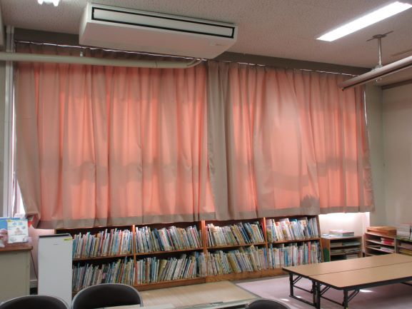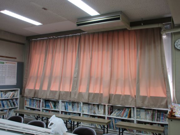 図書室にカーテンがつきました。