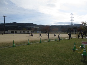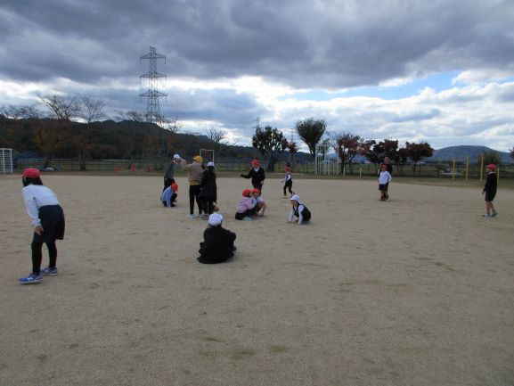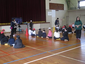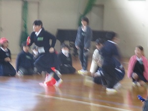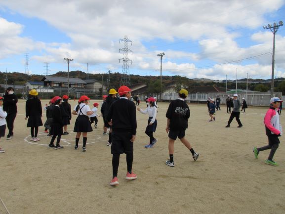 上田上小学校のわかば学級は、田上小学校、青山小学校の友だちとブロック交流会をしました。学校クイズやジャンケンリレー、玉入れなどをしました。寒さに負けず、元気いっぱいチャレンジしました。仲良く楽しく交流できました。