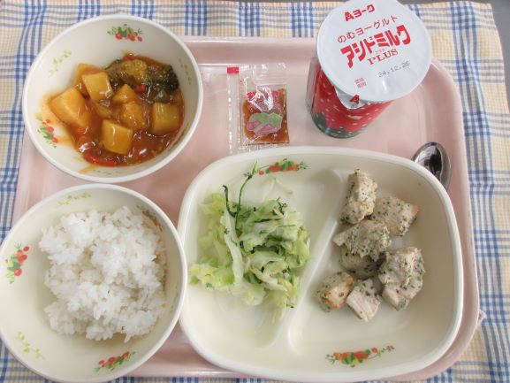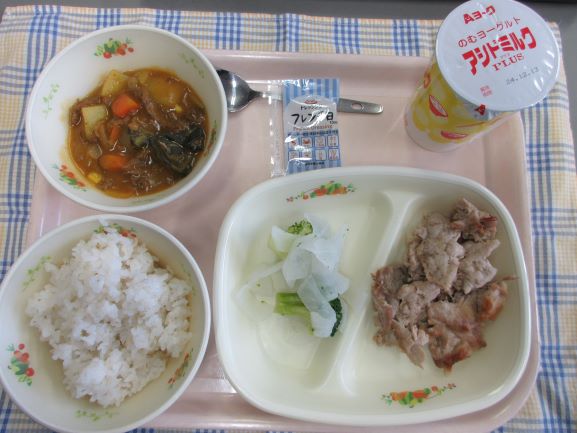 【おすすめカレー・残さず食べようデー】白ごはん(大津産米)・のむヨーグルト(A)
