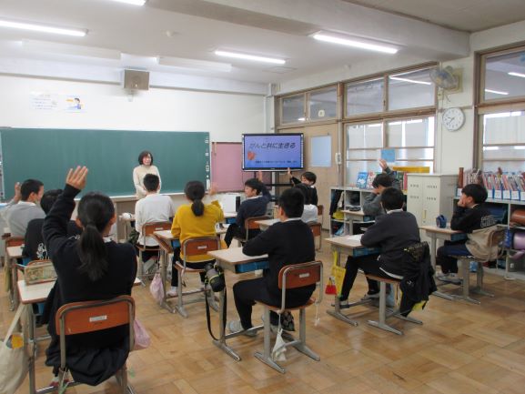県のがん患者団体連絡協議会の方が、6年生にがん教育の出前講座を行ってくださいました。ご自身の闘病体験をもとに、予防や早期発見の大切さ、「生きる」「いのち」ということの重みなどについてお話をしてくださいました。子どもたちはグループで感じたことなどを話し合いました。つらい治療を乗り越えて、今悔いのないように自分の人生を生きたいと話されたことから、子どもたちも多くのことを感じ取っている様子でした。
