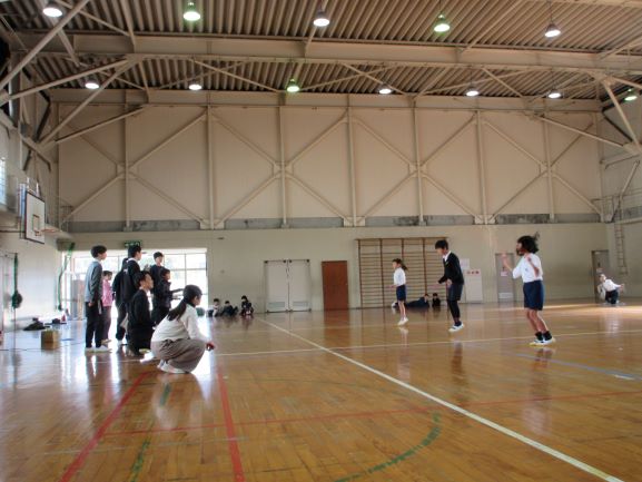 昼休みに、縄跳び7つの種目別、予選3位以内に入った子どもたちのチャンピオン大会がありました。体育食育委員会の子どもたちが司会や選手紹介、結果発表をしてくれました。予選を勝ち残った選手の子どもたちは、日頃の練習の成果を出そうと集中して跳んでいました。クラスを超えて応援に来てくれた子どもたちもいました。どの子のがんばりもすばらしかったです。今日のすばらしい跳び方をしている子に憧れて、また努力する子どもたちも増えていくのではないかと思います。